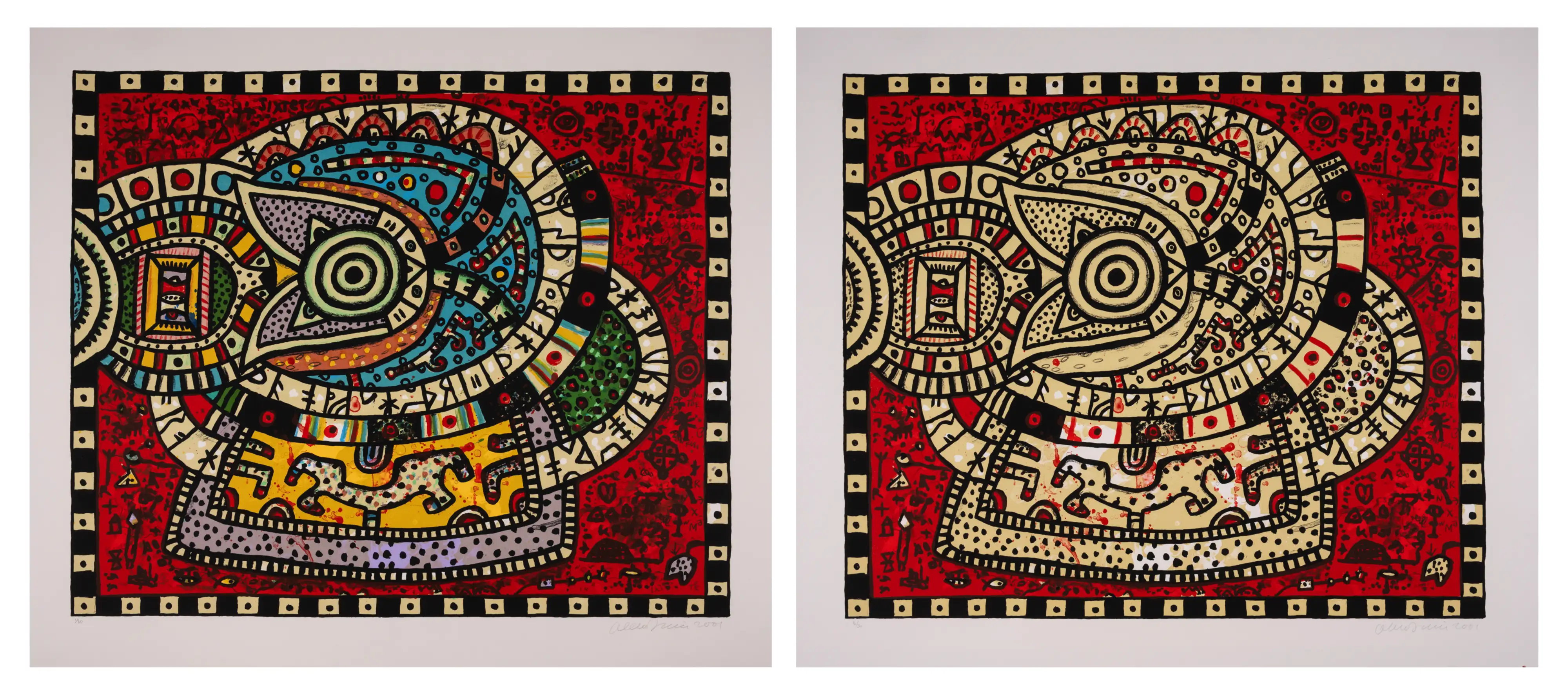 Two screenprints in colours, 2001, each signed and dated in pencil, each numbered from the edition of 30, published by Gresham Studios, Cambridge, on wove paper, each sheet 800 x 875mm (31 1/2 x 34 1/2in) (unframed) (2)